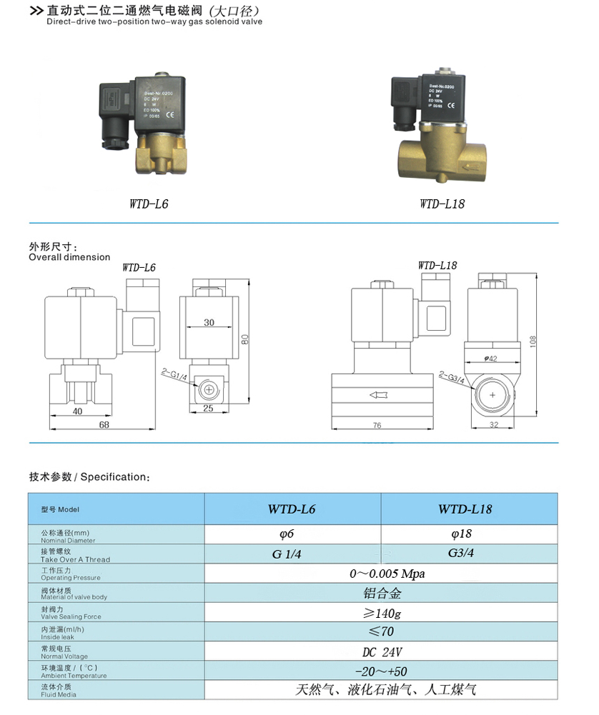 WTD-L6,WTD-L18,直動(dòng)式大口徑二位二通燃?xì)怆姶砰y