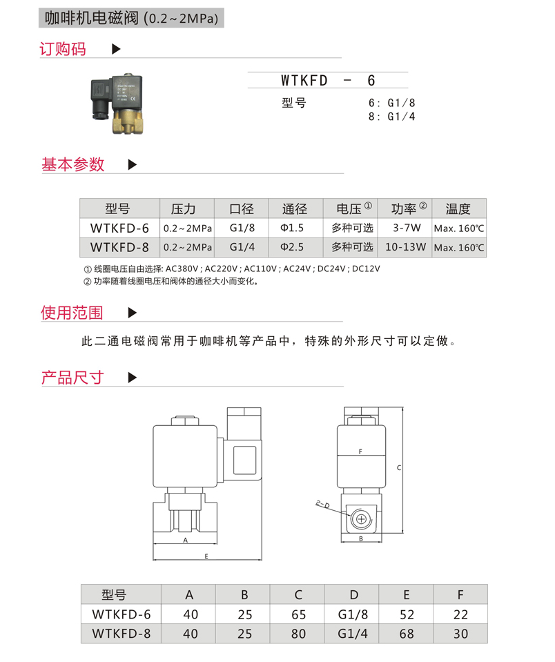 產(chǎn)品: 瀏覽次數(shù):6186WTKFD-6,WTKFD-8,咖啡機二位二通的電磁閥