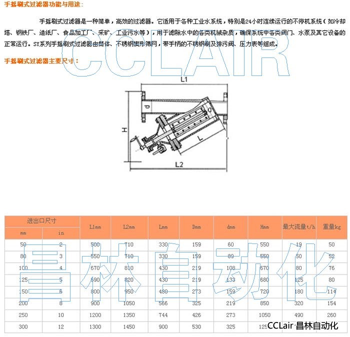 SYSG-50,SYSG-80,SYSG-100,SYSG-125,SYSG-150,手搖刷式過濾器