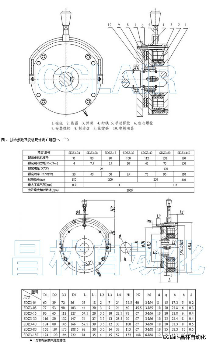 SDZ3-04,SDZ3-08,SDZ3-15,SDZ3-30,SDZ3-40,電磁失電制動器