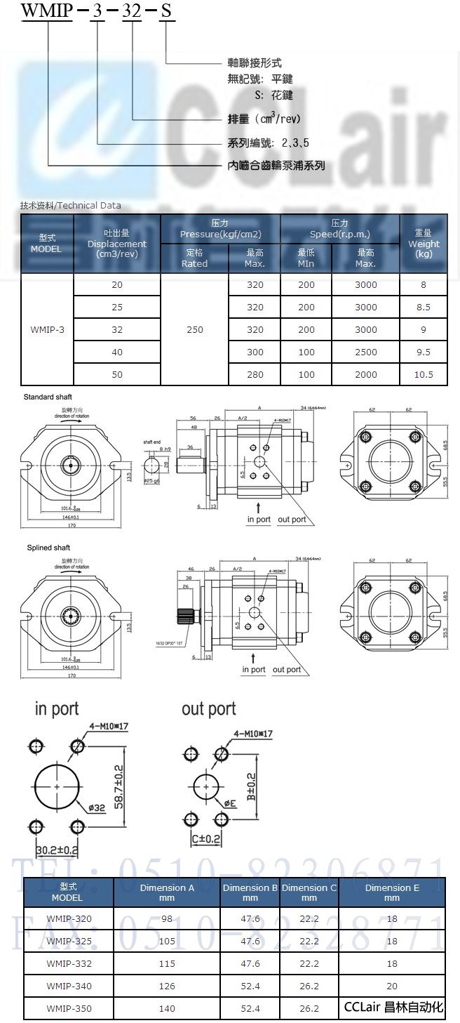 WMIP-320,WMIP-325,WMIP-332,WMIP-340,WMIP-350,內(nèi)齒輪泵浦