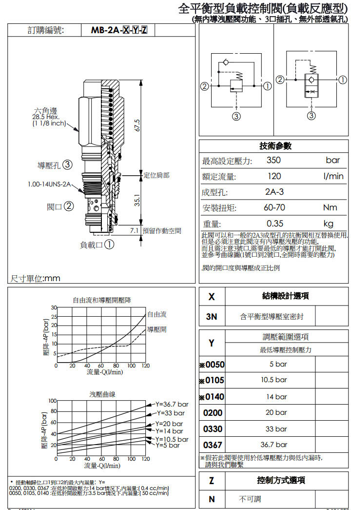 MB-2A-3N-0050-N,MB-2A-3N-0105-N,MB-2A-3N-0140-N,MB-2A-3N-0200-N,winner全平衡型負載控制閥