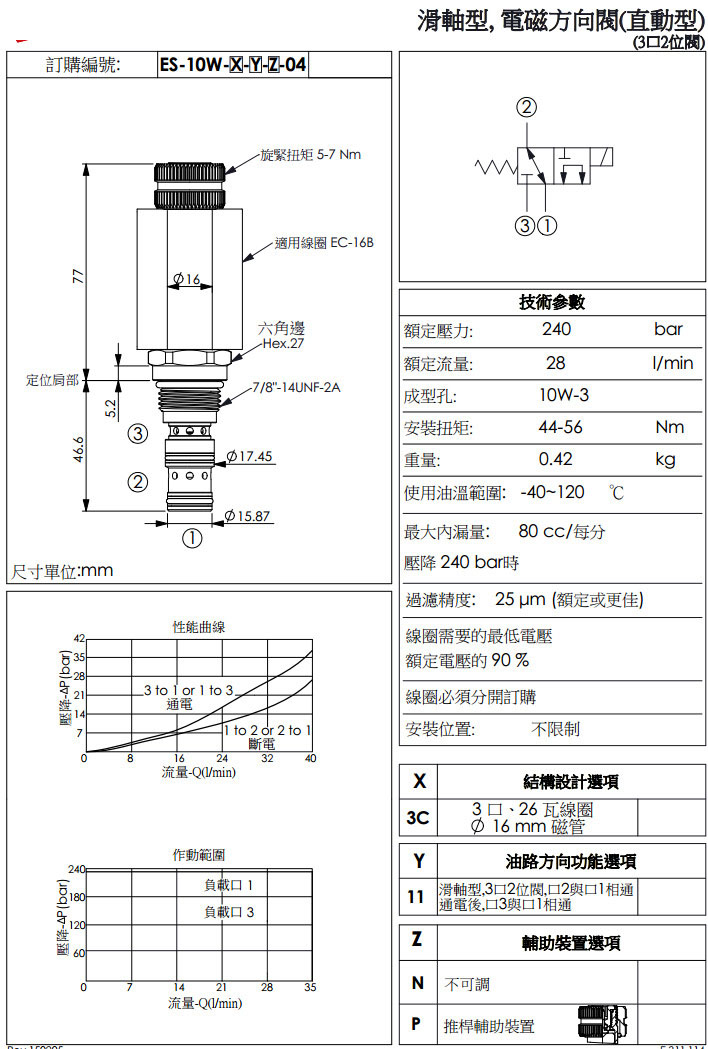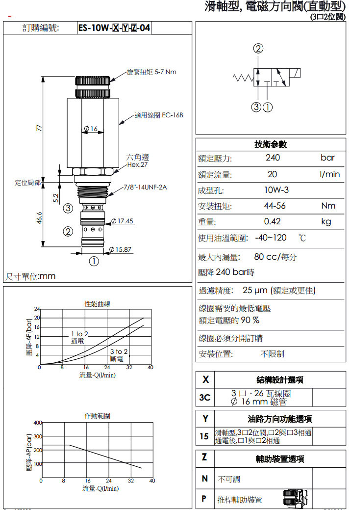 詳細(xì)信息 ES-10W-3C-11-N-04,ES-10W-3C-11-P-04,ES-10W-3C-14-N-04,ES-10W-3C-15-N-04,winner滑軸型電磁方向閥
