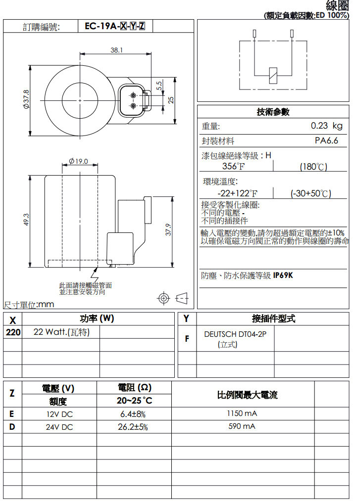詳細信息 EC-19A-220-F-E,EC-19A-220-F-D,winner線圈