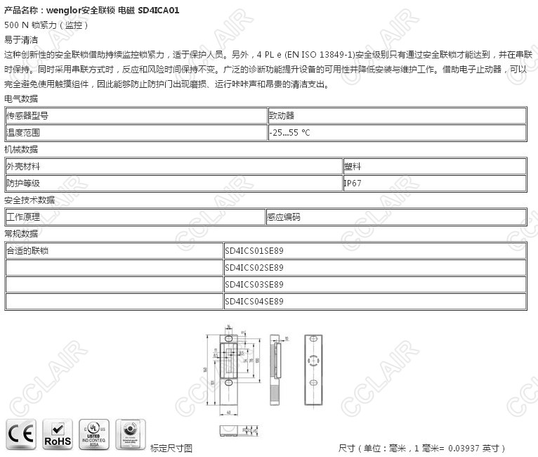 詳細(xì)信息 SD4ICA01,wenglor安全聯(lián)鎖 電磁