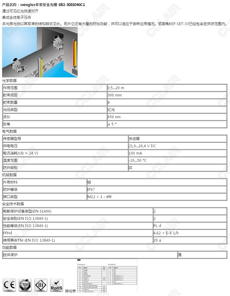 詳細(xì)信息 SB2-30IS090C1,wenglor多束安全光柵