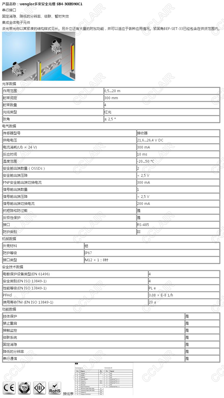 SB4-30IE090C1,wenglor多束安全光柵