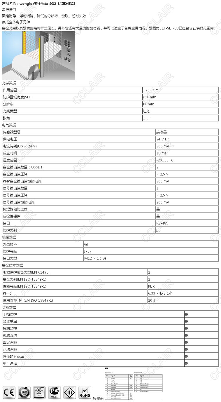 SG2-14IE045C1,wenglor安全光幕