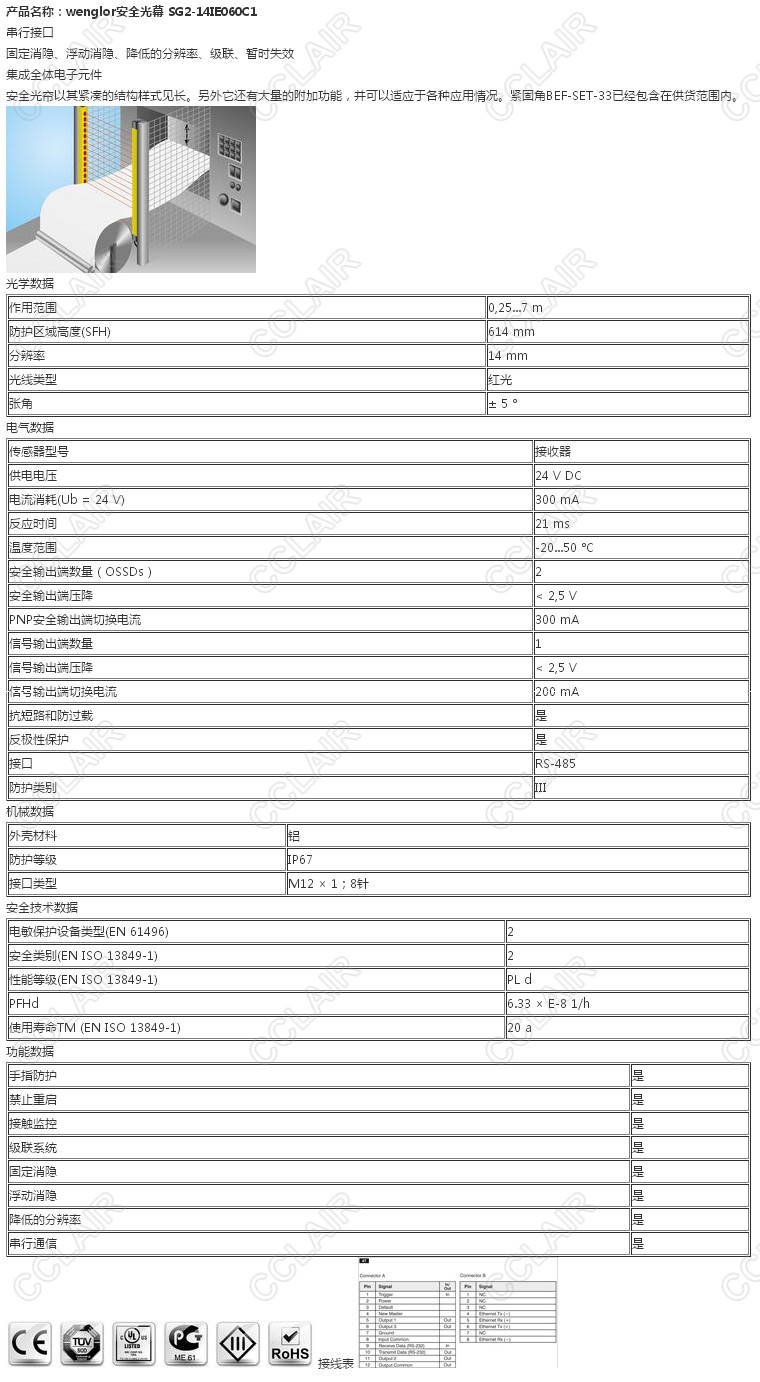 詳細(xì)信息 SG2-14IE060C1,wenglor安全光幕
