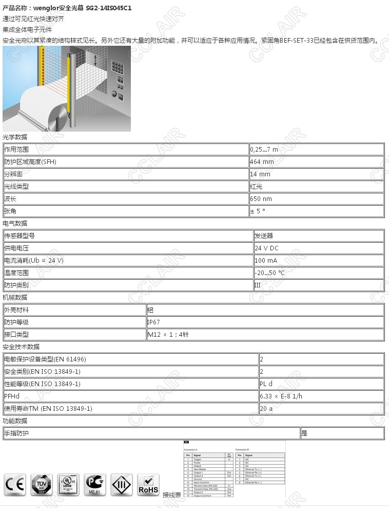 詳細(xì)信息 SG2-14IS045C1,wenglor安全光幕