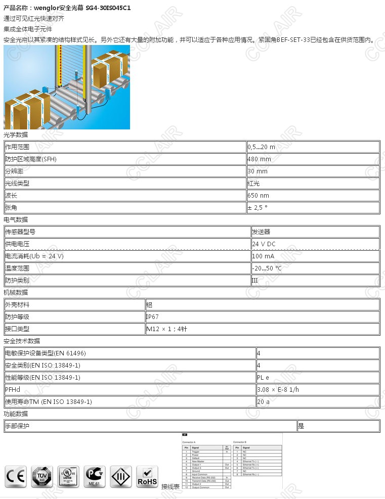 詳細(xì)信息 SG4-30IS045C1,wenglor安全光幕