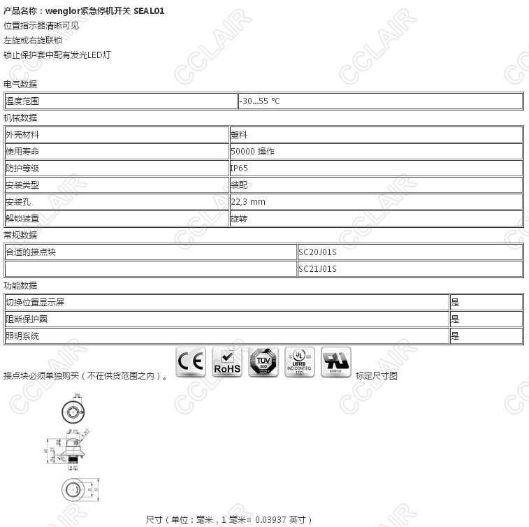 詳細(xì)信息 SEAL01,wenglor緊急停機(jī)開(kāi)關(guān)