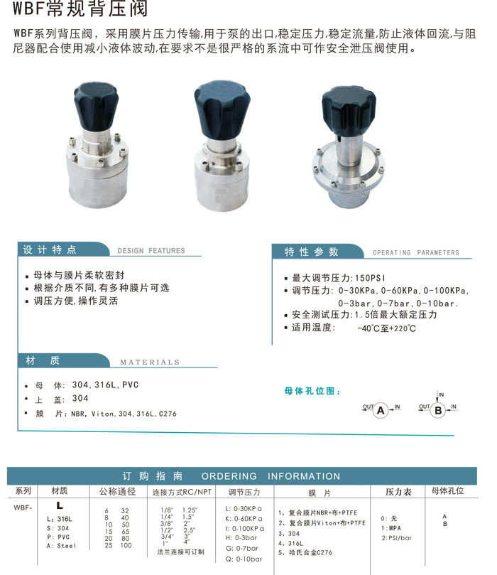 詳細(xì)信息 WBF-S6,WBF-S8,WBF-S10,WBF-S15,WBF-S20,WBF-S25,WBF-S32,WBF-S40,WBF-S50,WBF-S65,WBF-S80,WBF-S100,背壓閥