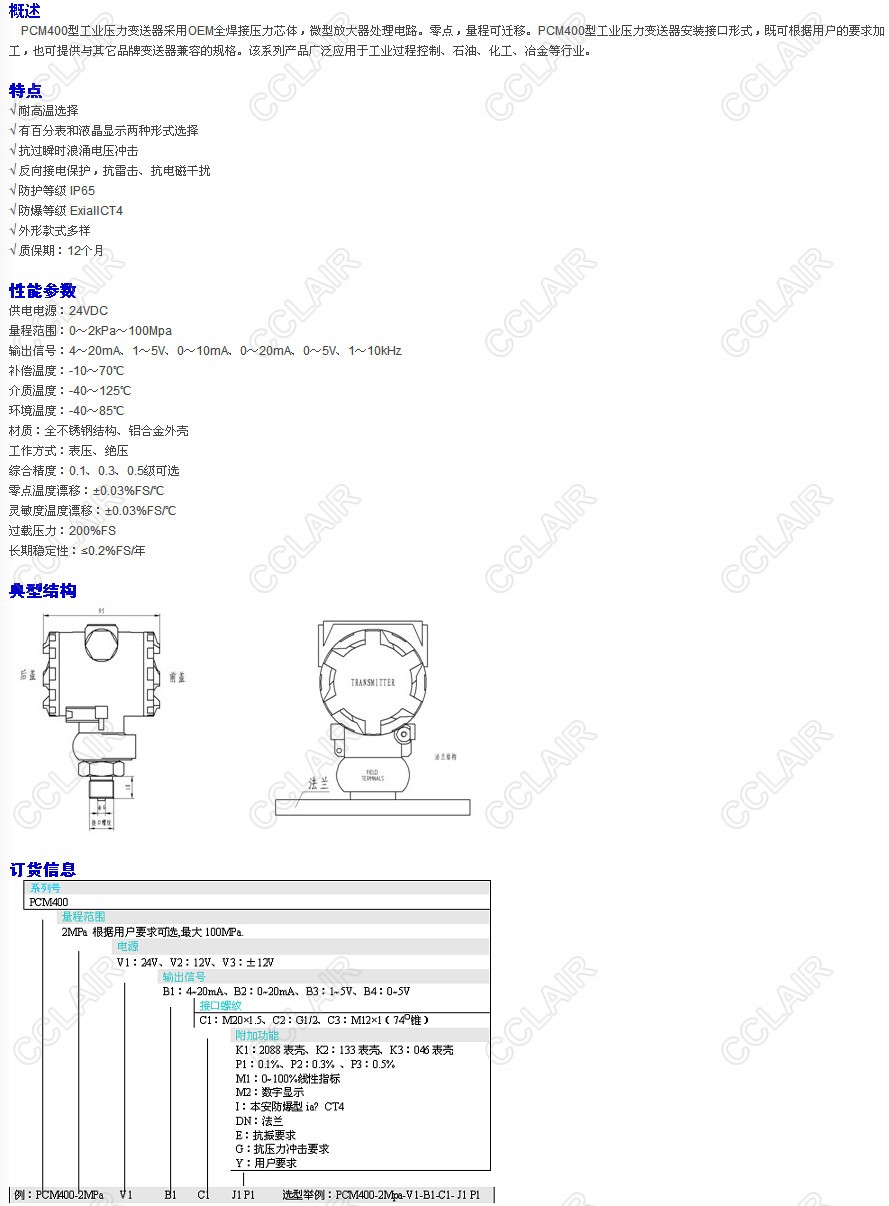 PCM400-2MPa-V1-B1-C1,PCM400-2MPa-V1-B1-C2,PCM400-2MPa-V1-B1-C3,PCM400-2MPa-V1-B2-C1,PCM400型工業(yè)壓力變送器