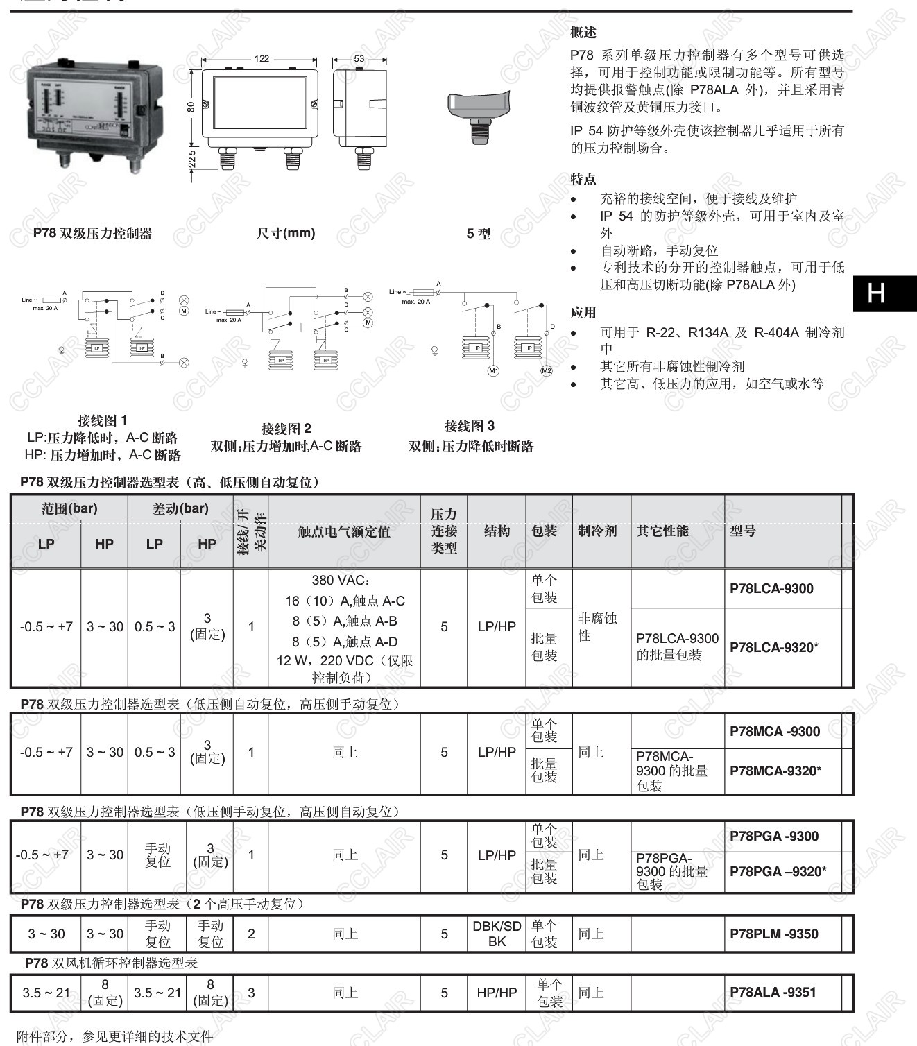詳細信息 P78LCA-9300,P78LCA-9320,P78MCA-9300,P78MCA-9320,P78PGA-9300,P78,雙級壓力控制器