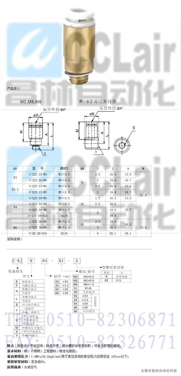 C-KJS03-M3,C-KJS03-M5,內(nèi)六角直通接頭,