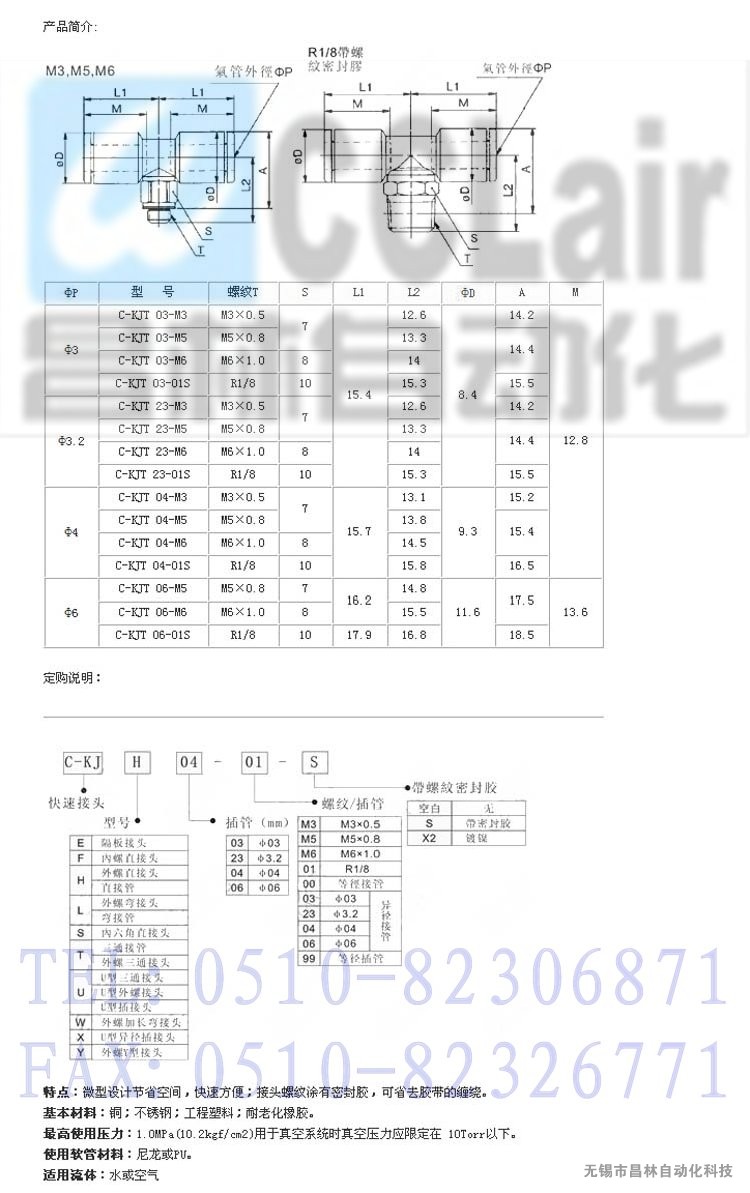 C-KJT23-M3,C-KJT23-M5,C-KJT23-M6,C-KJT23-01S, 外螺三通接頭