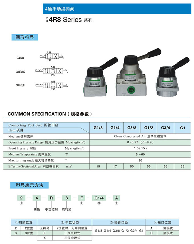 24R8-G1/8,24R8-G1/4,24R8-G3/8,24R8-G1/2,24R8-G3/4,24R8-G1,24R8-G1/8-A,4通手動換向閥