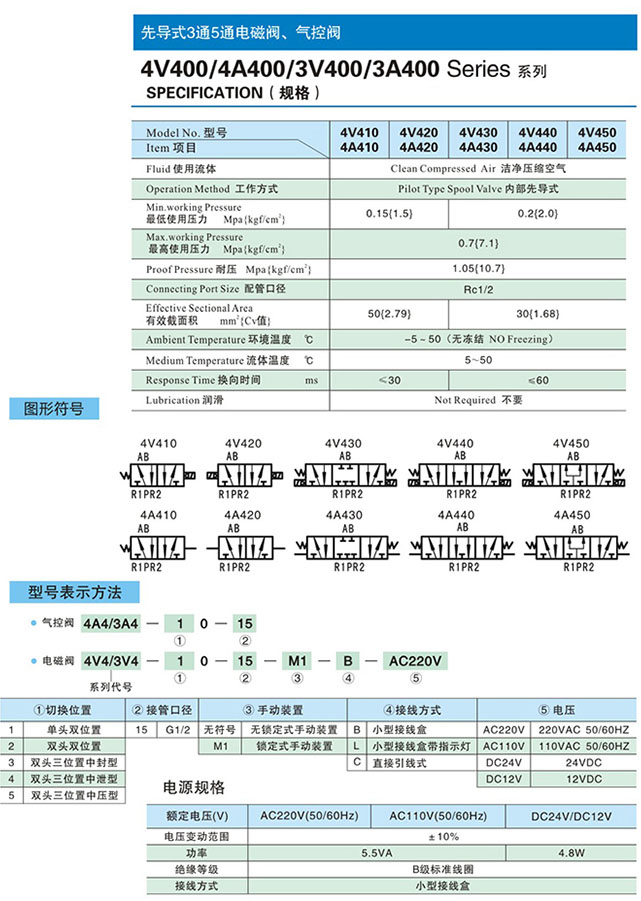 4V410-15,4V420-15,4V430-15,4V440-15,4V450-15,3V410-15,3V420-15,3V430-15,3V440-15,3V450-15,先導式3通5通電磁閥
