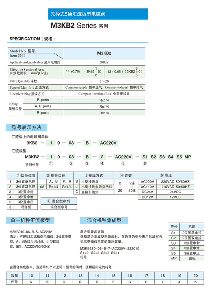 詳細(xì)信息 M3KB210-08,M3KB220-08,M3KB230-08,M3KB240-08,M3KB250-08,M3KB280-08,M3KB210-08-B,先導(dǎo)式5通匯流板型電磁閥