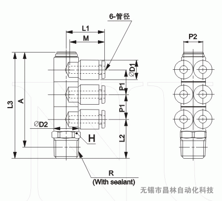 | MODEL | 管徑 | R | H | φD1 | φD2 | L1 | L2 | L3 | A | M | P1 | P2 | 重量 |