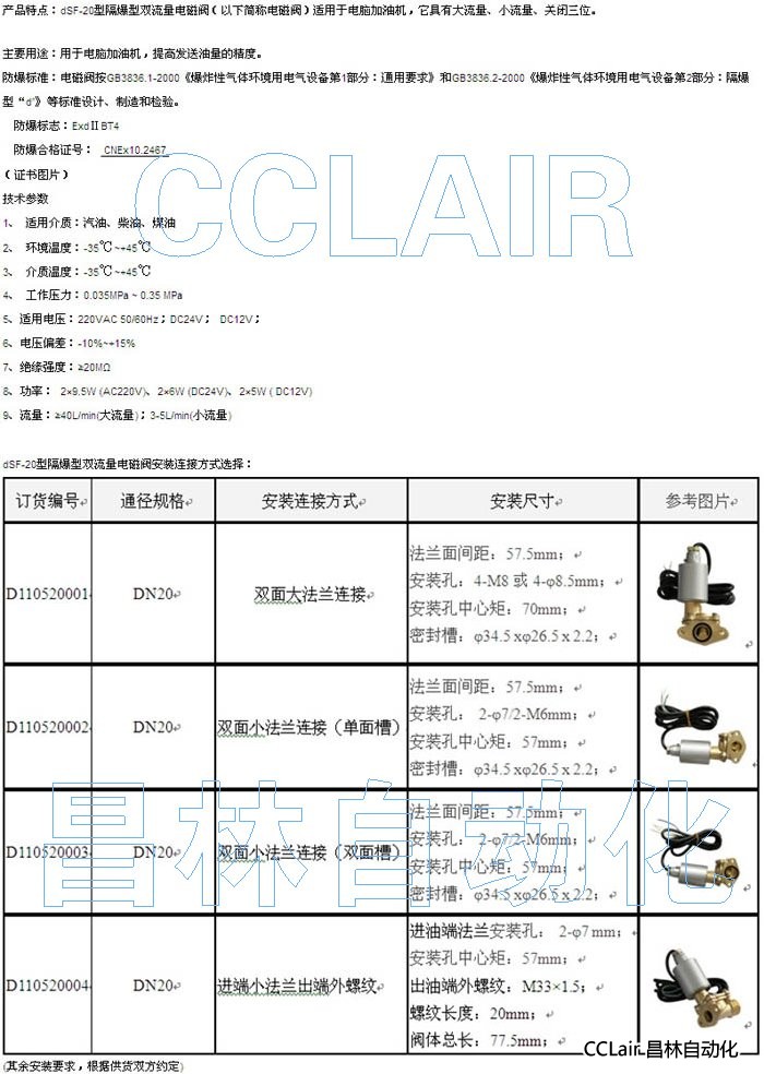 DSF-20,D110520001,D110520002,D110520003,D110520004,隔爆型雙流量電磁閥