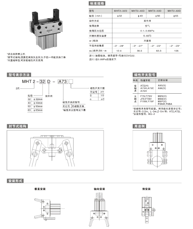 氣動(dòng)手指氣缸 MHT2-32D,MHT2-40D,MHT2-50D,MHT2-63D