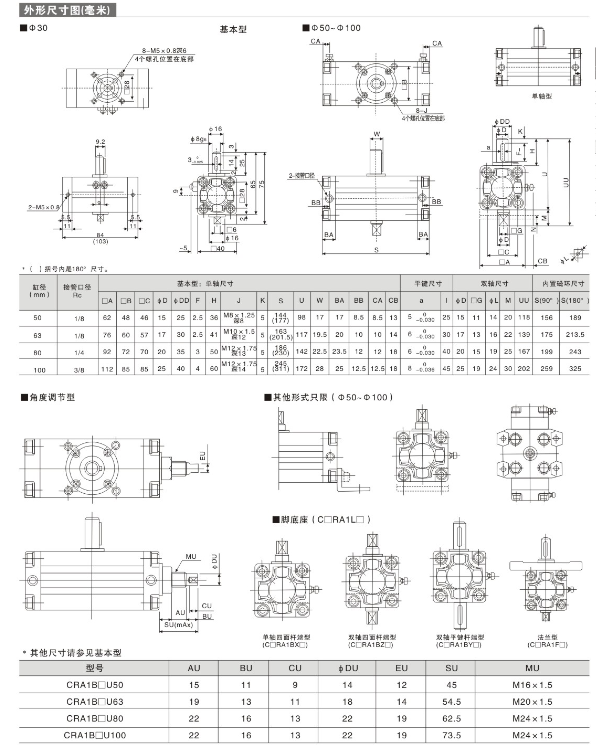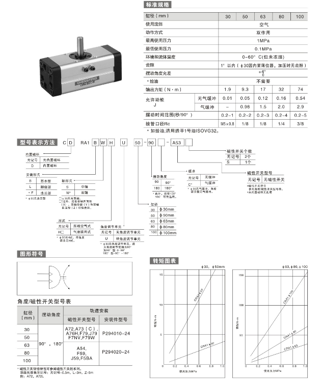 擺動氣缸 CRA1BS-50-90,CRA1BS-63-90,CRA1BS-80-90,CRA1BS-100-90,CRA1BS-50-180,CRA1BS-63-180, CRA1BS-80-180,CRA1BS-100-180,CRA1BW-30-90,CRA1BW-50-90,CRA1BW-63-90,CRA1BW-80-90, CRA1BW-100-90,CRA1BW-30-180,CRA1BW-50-180,CRA1BW-63-180