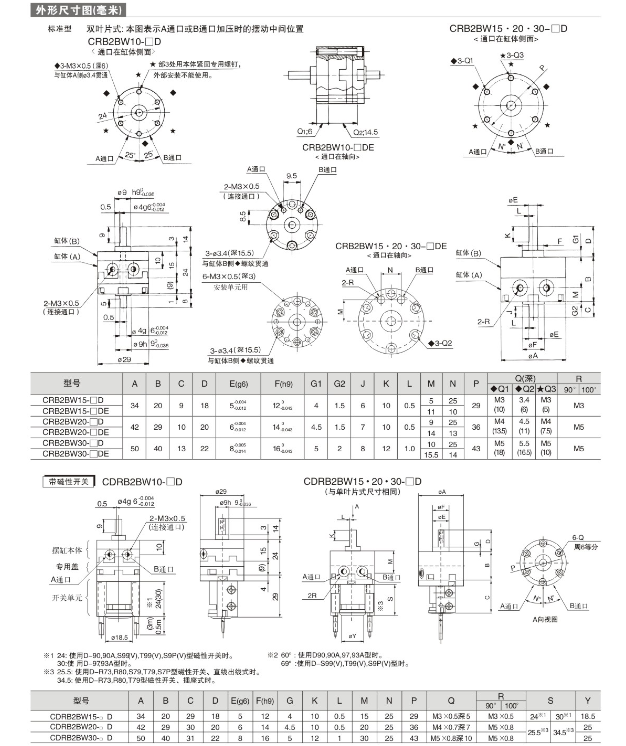 薄型擺動氣缸 CRQ2BS10-90,CRQ2BS15-90,CRQ2BS20-90,CRQ2BS30-90,CRQ2BS40-90,CRQ2BS10-180,CRQ2BS15-180, CRQ2BS20-180,CRQ2BS30-180,CRQ2BS40-180,CRQ2BW10-90,CRQ2BW15-90,CRQ2BW20-90, CRQ2BW30-90,CRQ2BW40-90,CRQ2BW10-180,CRQ2BW15-180,CRQ2BW20-180