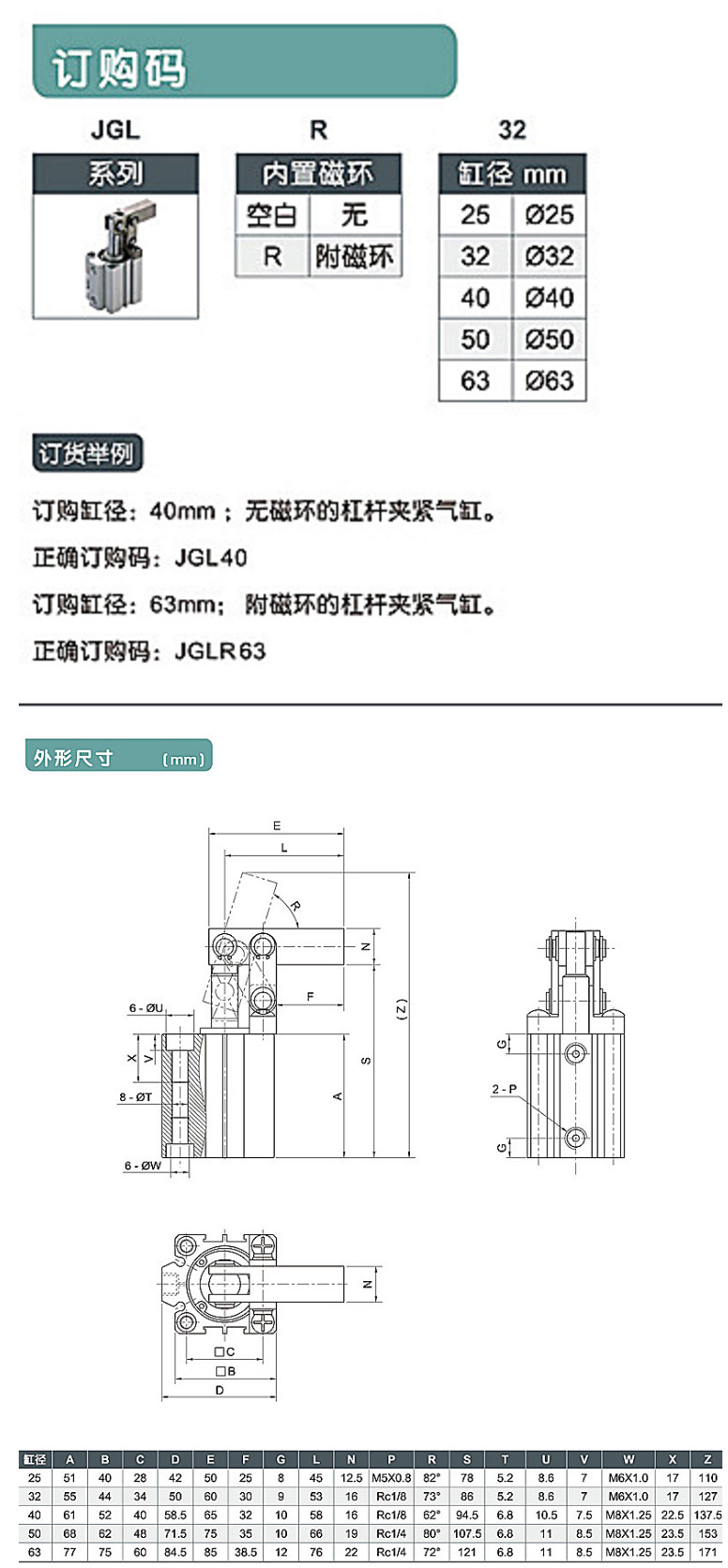 夾緊氣缸 JGL-25,JGL-22,JGL-40,JGL-50,JGL-63,JGLR-25,JGLR-22,JGLR-40,JGLR-50,JGLR-63