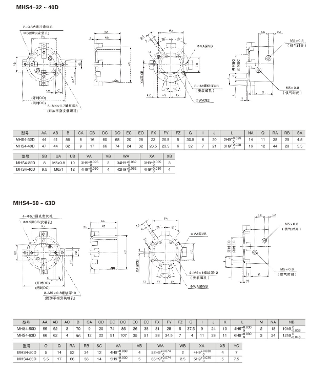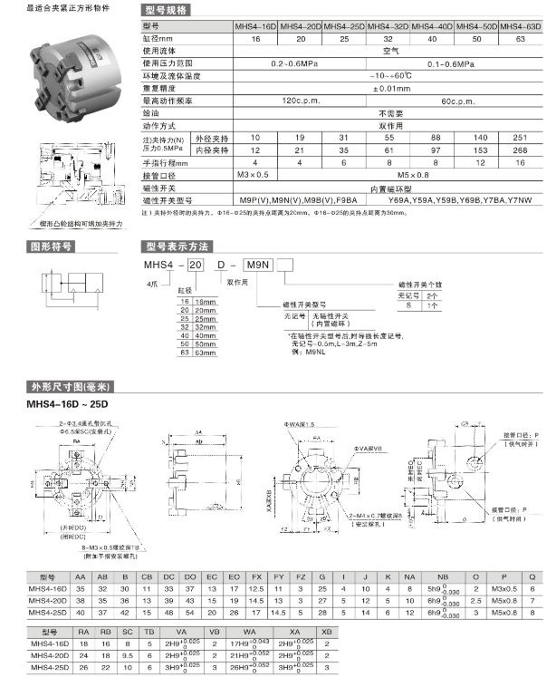 氣爪氣缸 MHS4-16D,MHS4-20D,MHS4-25D,MHS4-32D,MHS4-40D,MHS4-50D,MHS4-63D