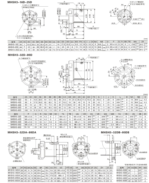 氣爪氣缸 MHSH3-16D,MHSH3-20D,MHSH3-25D,MHSH3-32D,MHSH3-40D,MHSH3-50D,MHSH3-63D,MHSH3-80D
