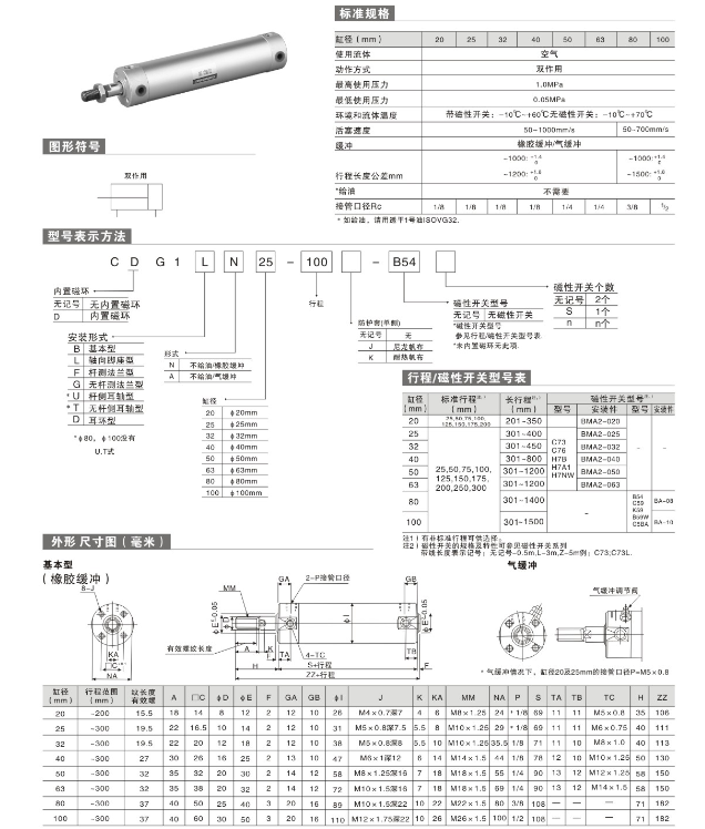 輕型氣缸 CG1BN20-25,CG1BN20-50,CG1BN20-75,CG1BN20-100,CG1BN20-125,CG1BN20-150,CG1BN20-175, CG1BN20-200,CG1BN20-225,CG1BN20-250,CG1BN20-275,CG1BN20-300,CG1BN20-350,CG1BN20-400