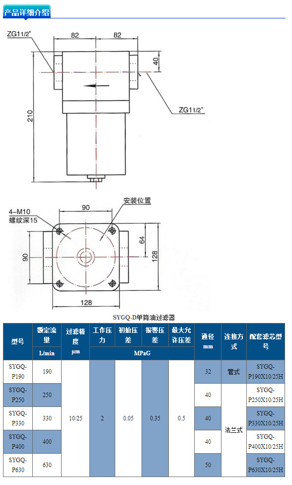 詳細信息 SYGQ-P190,SYGQ-P250,SYGQ-P330,SYGQ-P400,SYGQ-P630,SYGQ-D型單筒油過濾器