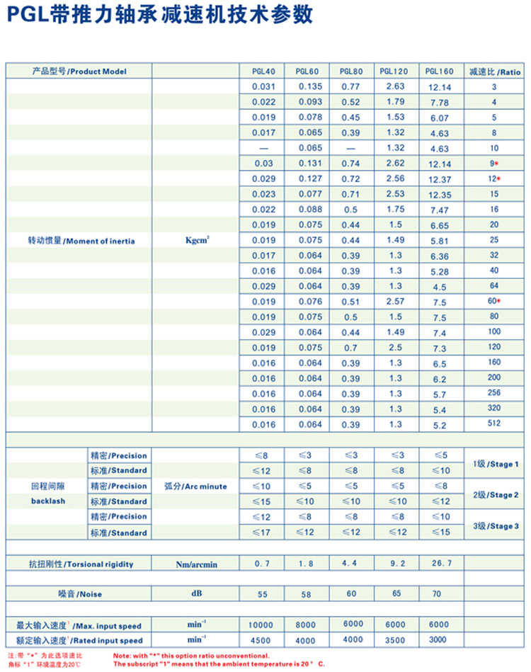 PGL40,PGL60,PGL80,PGL120,PGL180,軸承減速機