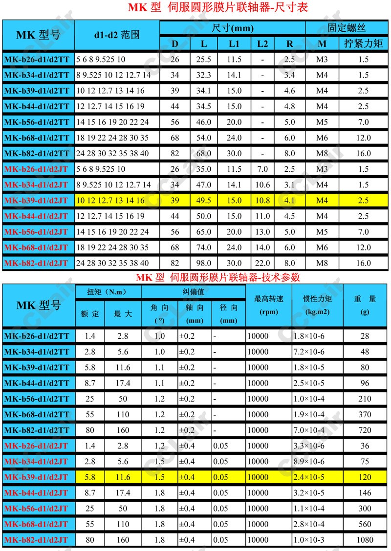 MK-b26,MK-b34,MK-b39,MK-b44,MK-b56,MK-b68,MK-b82,MK-b82-d1/d2TT,MK-b39-d1/d2JT,伺服圓形膜片聯(lián)軸器