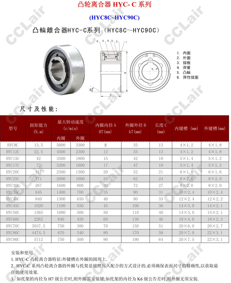 詳細(xì)信息 HYC8C,HYC12C,HYC25C,HYC30C,HYC35C,HYC40C,HYC50C,HYC60C,HYC70C,HYC80C,HYC90C,凸輪離合器 HYC15C,HYC17C,HYC20C,HYC45C,