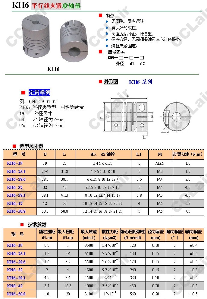 KH6-19,KH6-25.4,KH6-28.6,KH6-32,KH6-38.1,KH6-42,KH6-50.8,平行線夾緊聯(lián)軸器