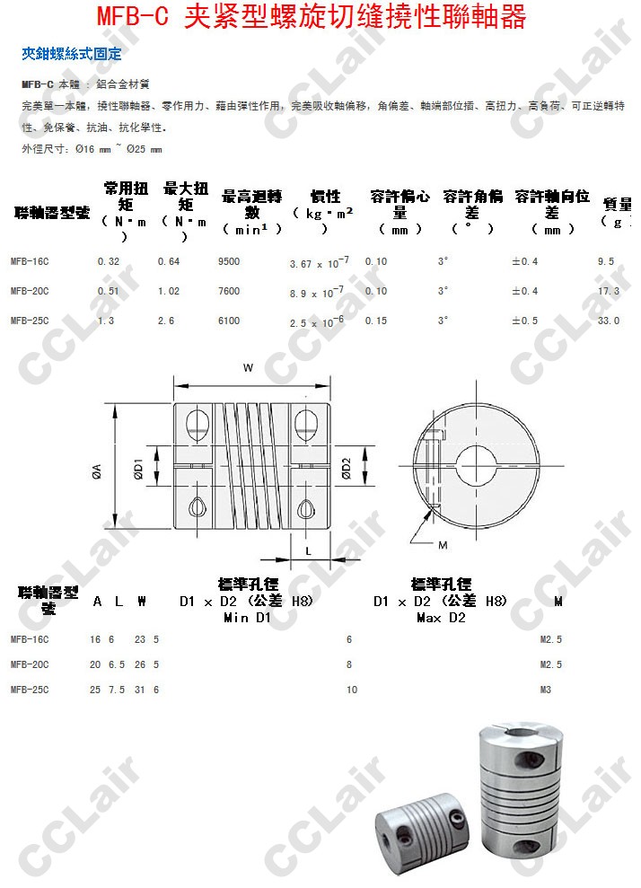詳細(xì)信息 MFB-16C,MFB-20C,MFB-25C,夾緊型螺旋切縫撓性聯(lián)軸器