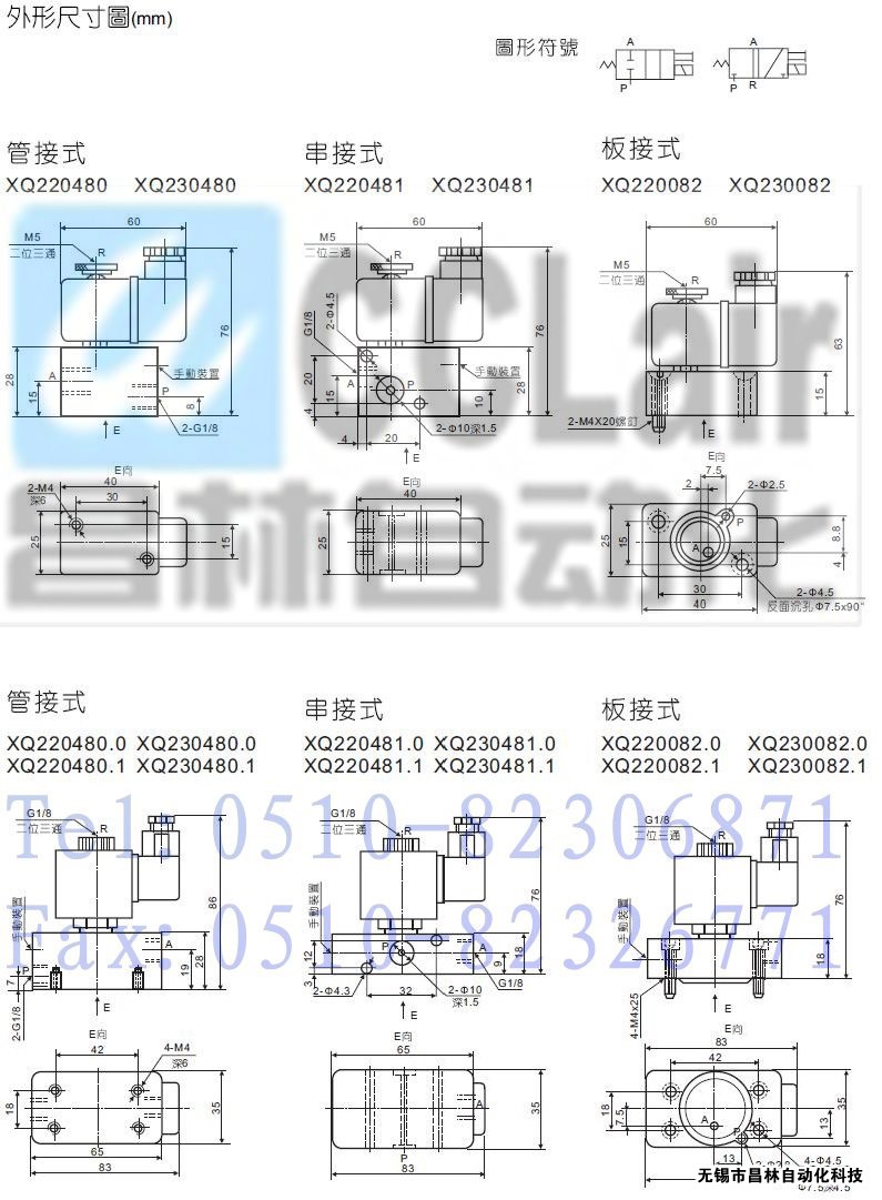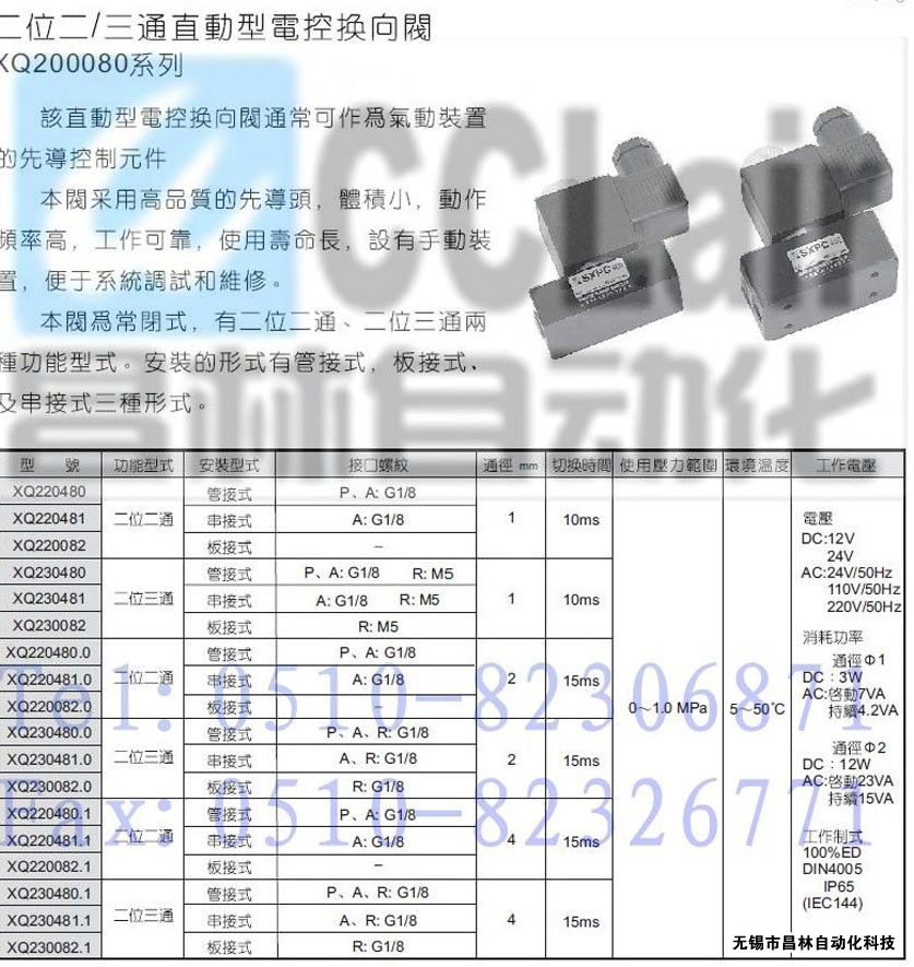 XQ220481.1,XQ220082.1,XQ230480.1,XQ230481.1,XQ230082.1,二位二通/三通直動型電控換向閥