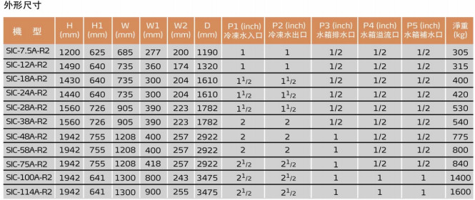 詳細(xì)信息 SIC-7.5A-R2,SIC-12A-R2,SIC-18A-R2,SIC-24A-R2,SIC-28A-R2,SIC-38A-R2,SIC-48A-R2,SIC-58A-R2,SIC-75A-R2,SIC-100A-R2,SIC-114A-R2環(huán)保冷媒工業(yè)用冷水機(jī)