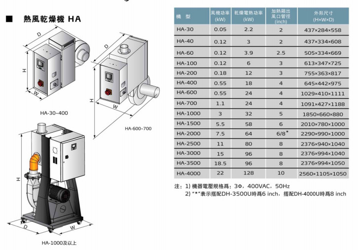 詳細(xì)信息 HA-30,HA-40,HA-60,HA-100,HA-200,HA-400,HA-600,HA-700,HA-1000,HA-1500,HA-2000,HA-2500,HA-3000,HA-3500,HA-4000熱風(fēng)干燥機