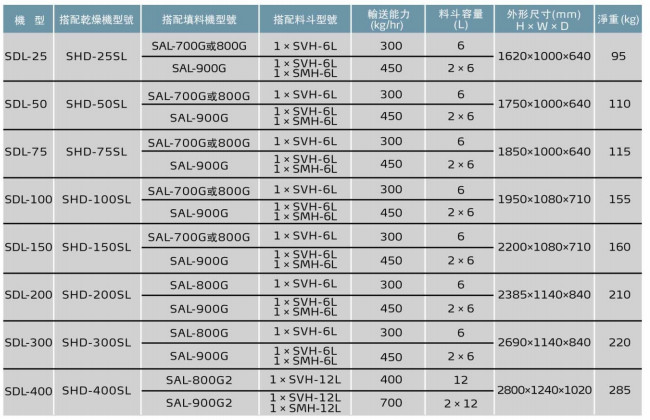 詳細(xì)信息 SDL-25,SDL50,SDL-75,SDL-100,SDL-150,SDL-200,SDL-300,SDL-400,熱風(fēng)干燥送料組合