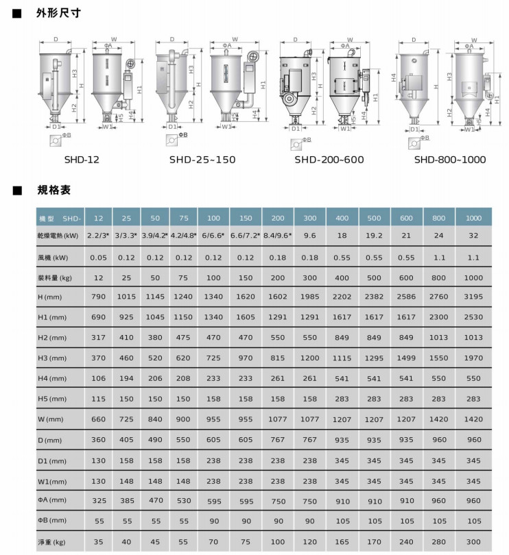 SHD-12,SHD-25,SHD-50,SHD-75,SHD-100,SHD-150,SHD-200,SHD-300,SHD-400,SHD-500,SHD-600,SHD-800,SHD-1000料頭干燥機(jī)