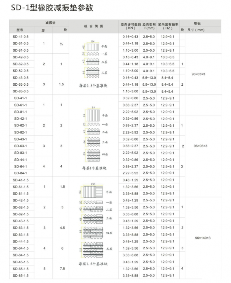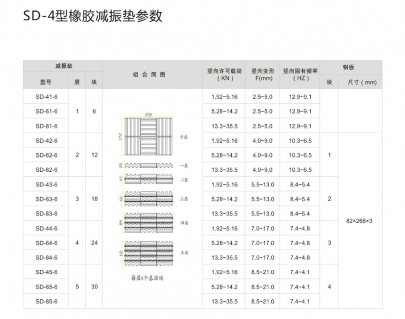 橡膠減振墊 SD-41-6,SD-61-6,SD-81-6,SD-42-6,SD-62-6,SD-82-6,SD-43-6