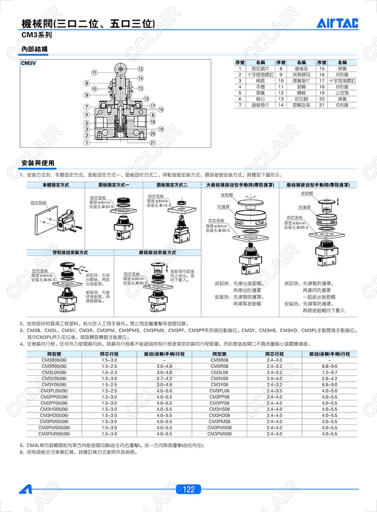 CM3B-05,CM3R-05,CM3L-05,CM3V-05,CM3Y-05,CM3PL-05,AIRTAC機(jī)械閥