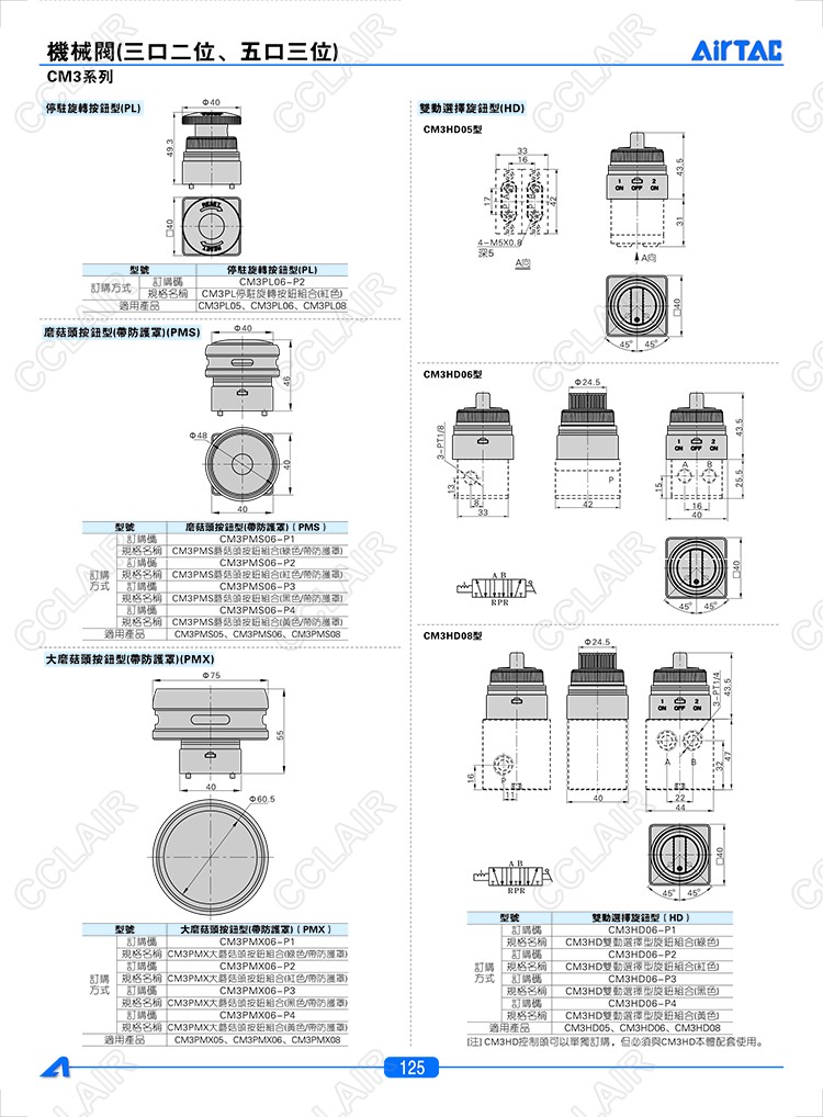 詳細(xì)信息 CM3B-05,CM3R-05,CM3L-05,CM3V-05,CM3Y-05,CM3PL-05,AIRTAC機(jī)械閥