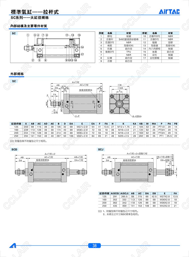SC125*25,SC125*25-S,SCD125*25,SCD125*25-S,SCJ125*25,SCJ125*25-S,AIRTAC亞德客大缸徑規(guī)格標(biāo)準(zhǔn)氣缸--拉桿式