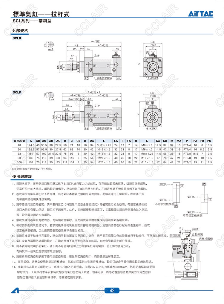 SCLB40*25,SCLB40*25-S,SCLB40*50,SCLF40*25,SCLF40*25-S,SCLF40*50,AIRTAC亞德客標準氣缸-拉桿式