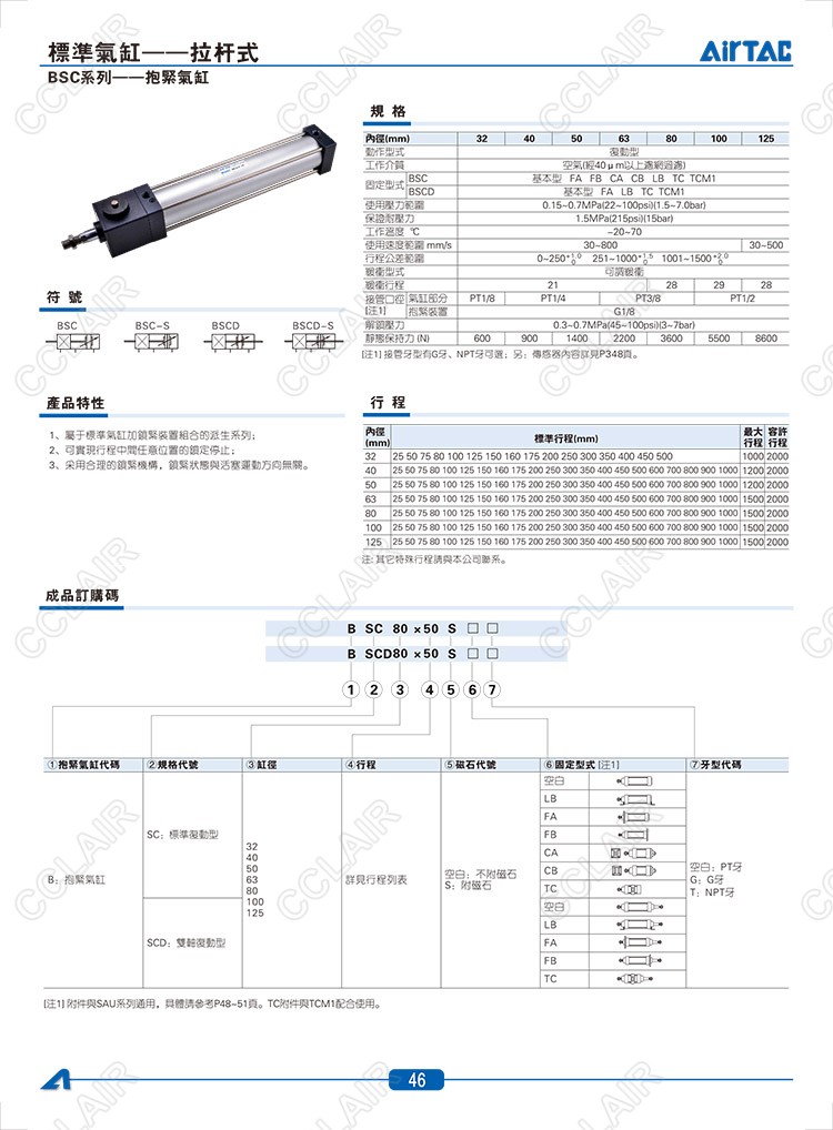 AIRTAC亞德客 標準氣缸-拉桿式,BSC32*450,BSC32*450-S,BSC32*500,BSC32*500-S,BSCD32*350-S,BSCD32*400,BSCD32*400-S,BSCD32*450,BSCD32*450-S,BSCD32*500,BSCD32*500-S,BSC63*800-S,BSC63*900,BSC63*900-S,BSC63*1000,BSC63*1000-S